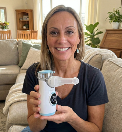 We didn't design MediMist to sit in a medicine cabinet 364 days a year. It’s built for the woman who feels stuck at 80% capacity as her "new normal". Whether it’s that annoying "butterfly tickle" during a long workday or the heavy, restricted feeling you get on the stairs, MediMist is your daily partner for reclaiming 100% lung capacity. Because it uses gentle Ultrasonic Mesh Technology to create a fine micro-mist, it’s safe for consistent, daily respiratory support whenever you feel like you just can't get that deep, satisfying breath.